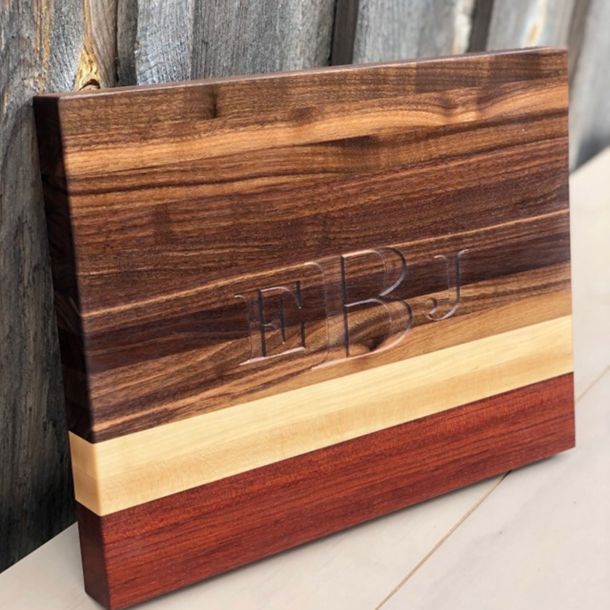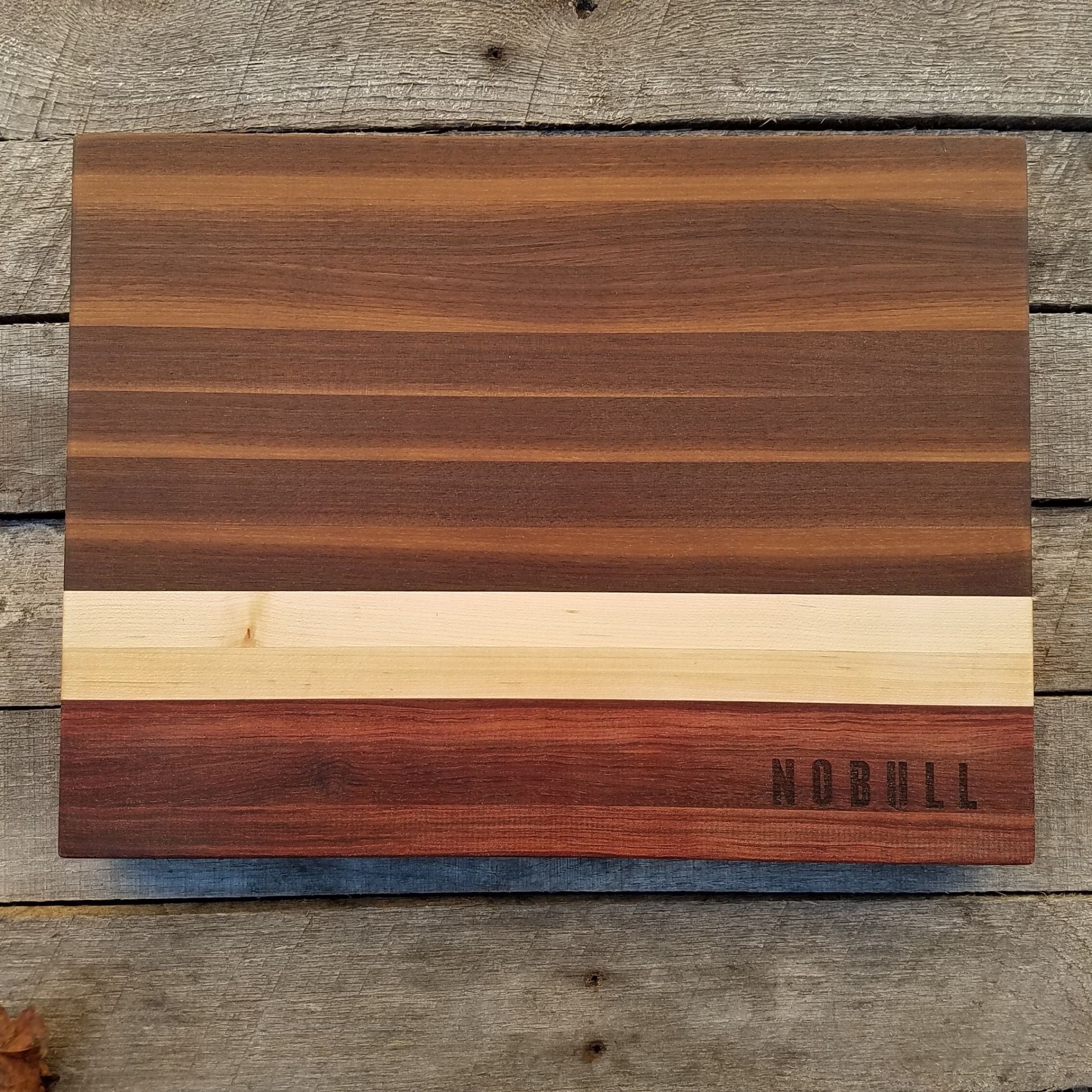 The Captain’s Cutting Board is a sleek and nautical dark wood cutting board for the modern chef in your life. Made with black walnut, hard maple, and bubinga or jatoba (depending on availability), when combined and finished the dark wood cutting board gives off a satiny finish that contrasts beautifully.