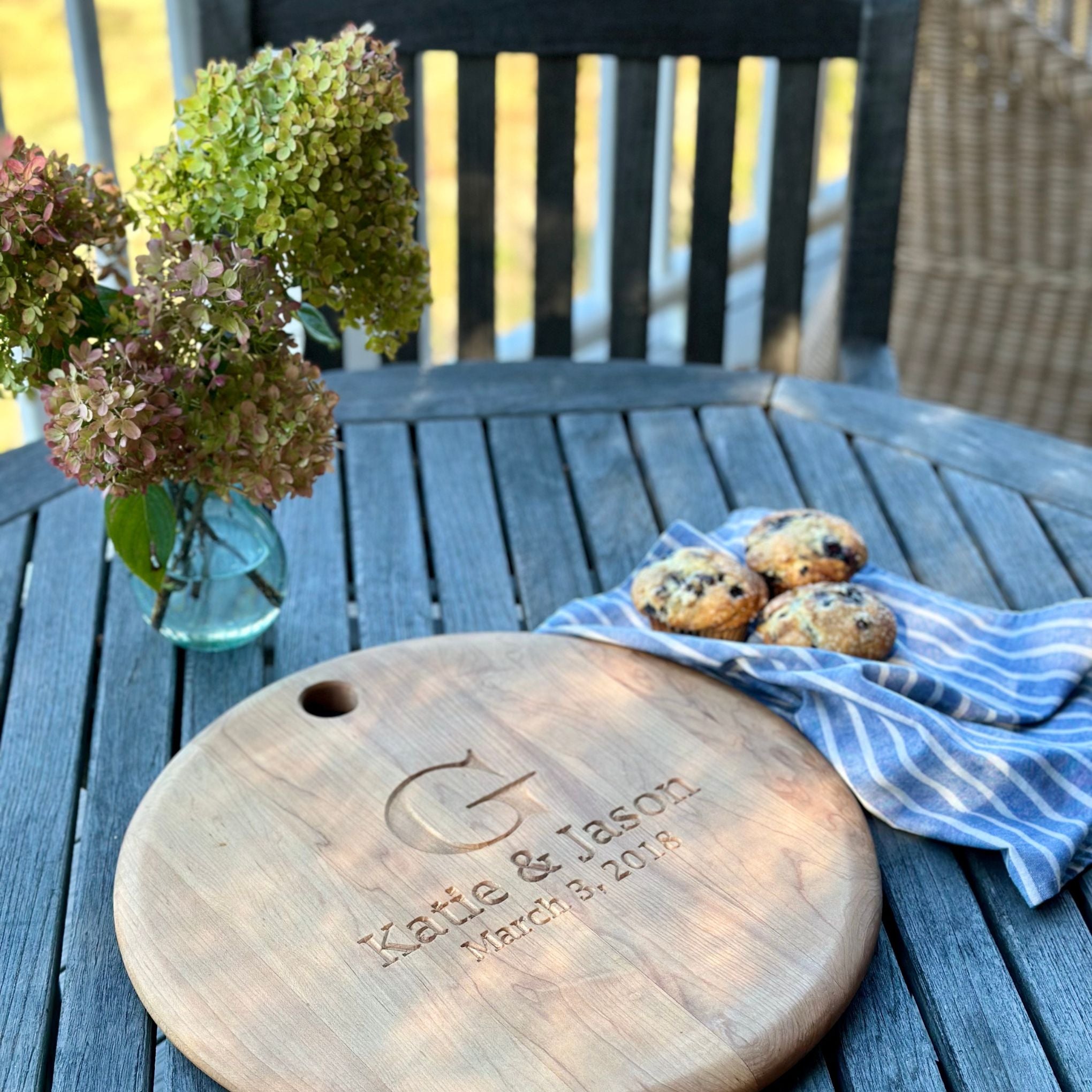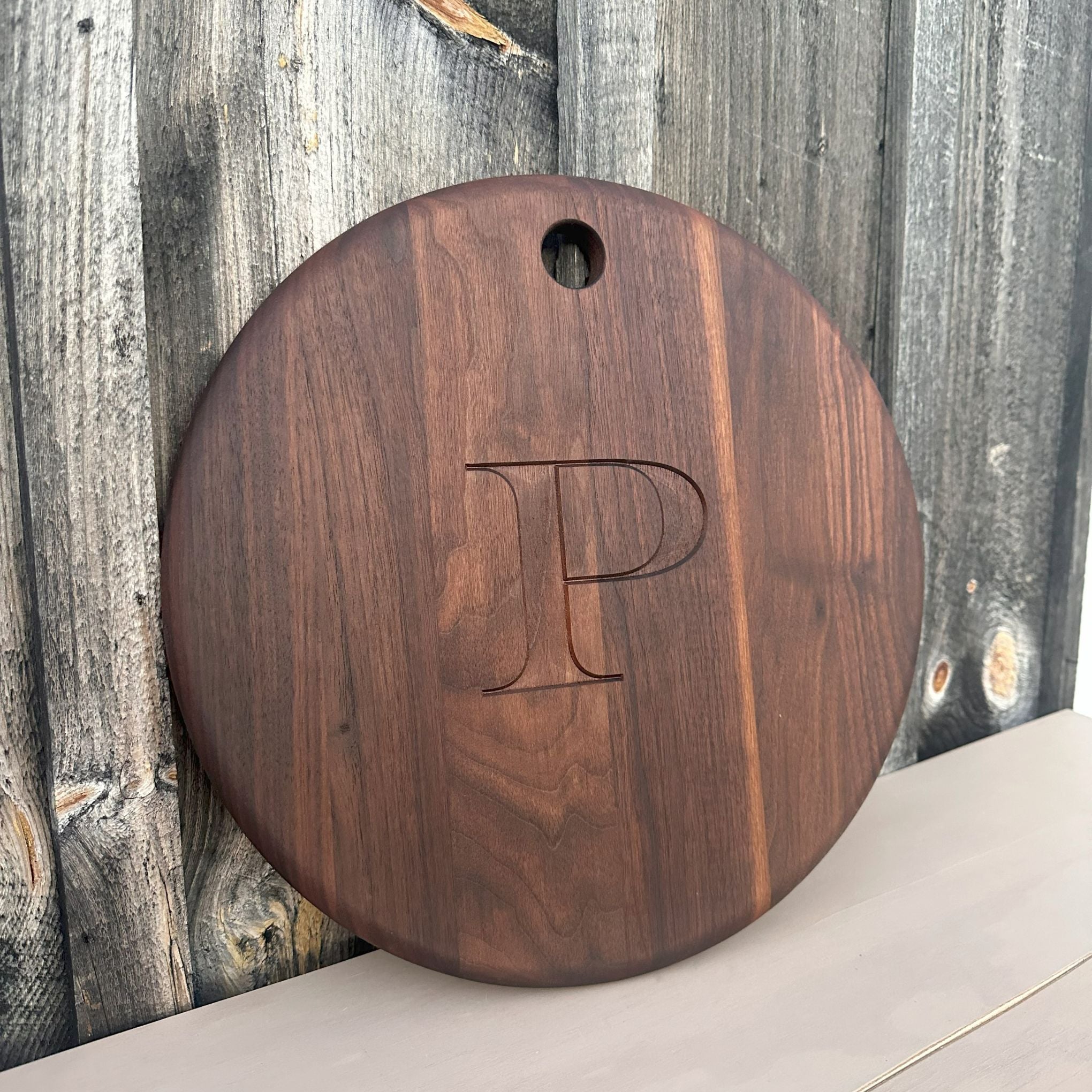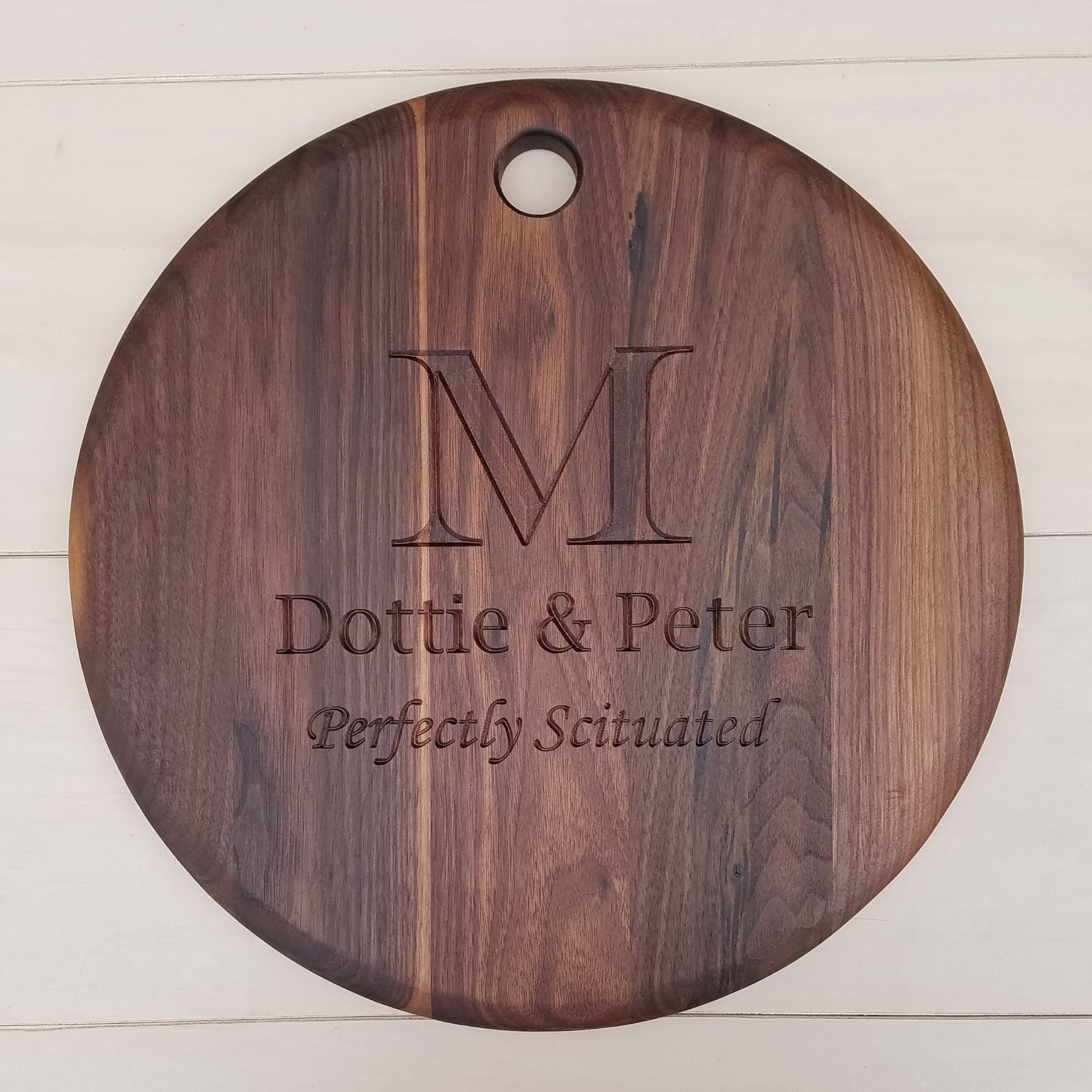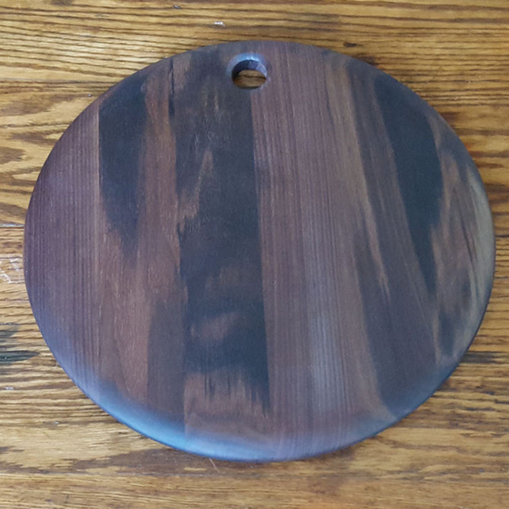 Made from high-quality, sustainably sourced Black Walnut and Hard Maple, our round wood serving board showcases the natural grain and rich tones of hardwood. It adds a touch of rustic charm to any table setting and provides ample space for an array of treats.