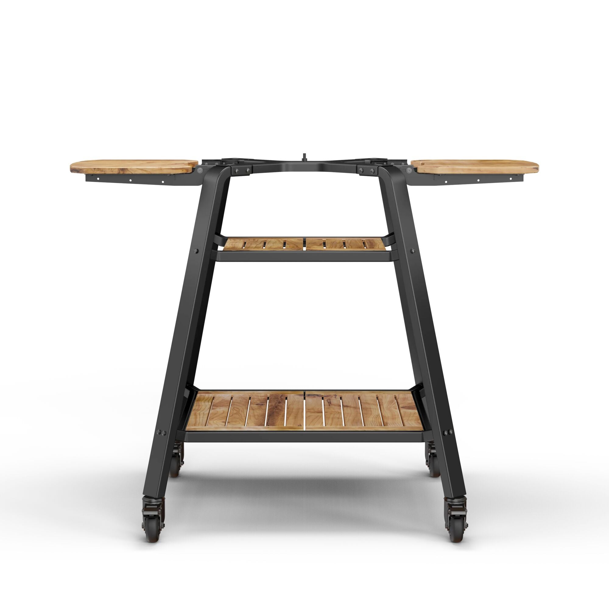 Designed with cooking on the Dome in mind, your oven securely connects to the stand with an easy turn fastener and sits at the perfect height for cooking. The bamboo shelves, hanging hooks and adjustable wings are built in for convenience while the four large wheels make it easy to move your oven around your backyard.