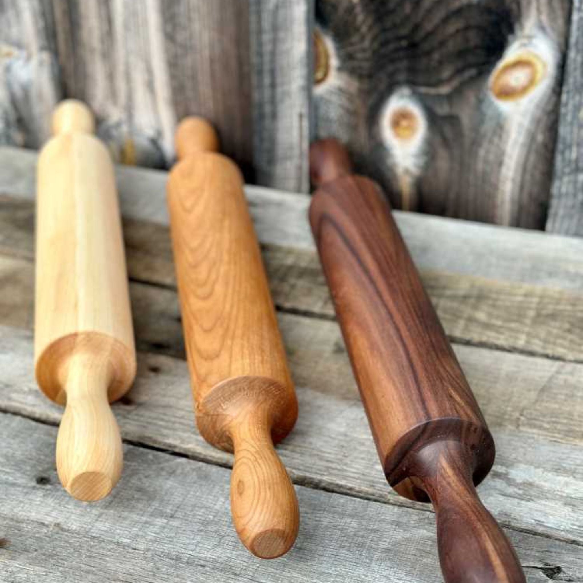 We started with a block of natural hardwood and used a lathe to craft each wooden rolling pin. Each pin is like a snowflake and a true one-of-a-kind. Available in three different wood types, you can pick a style that matches your kitchen décor.