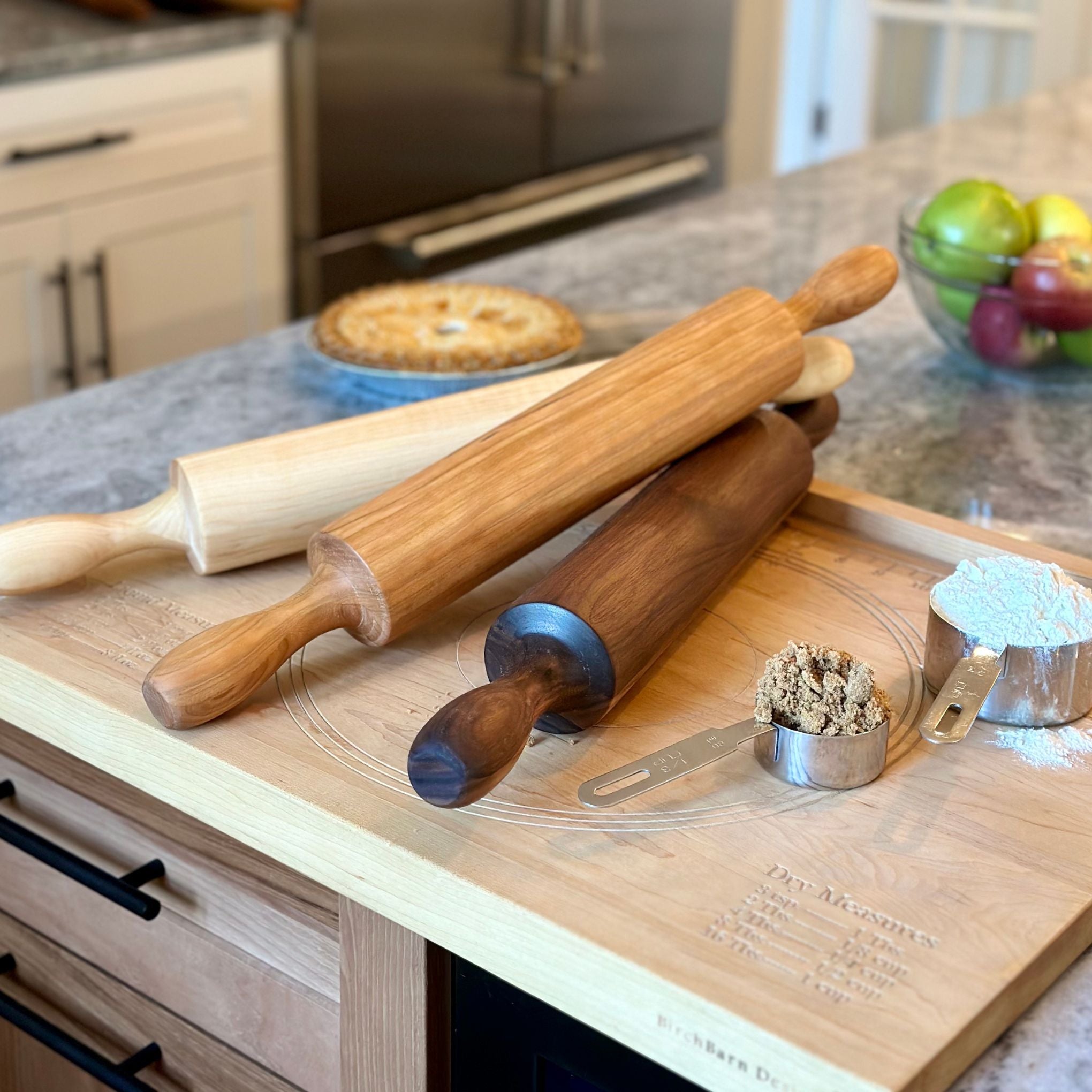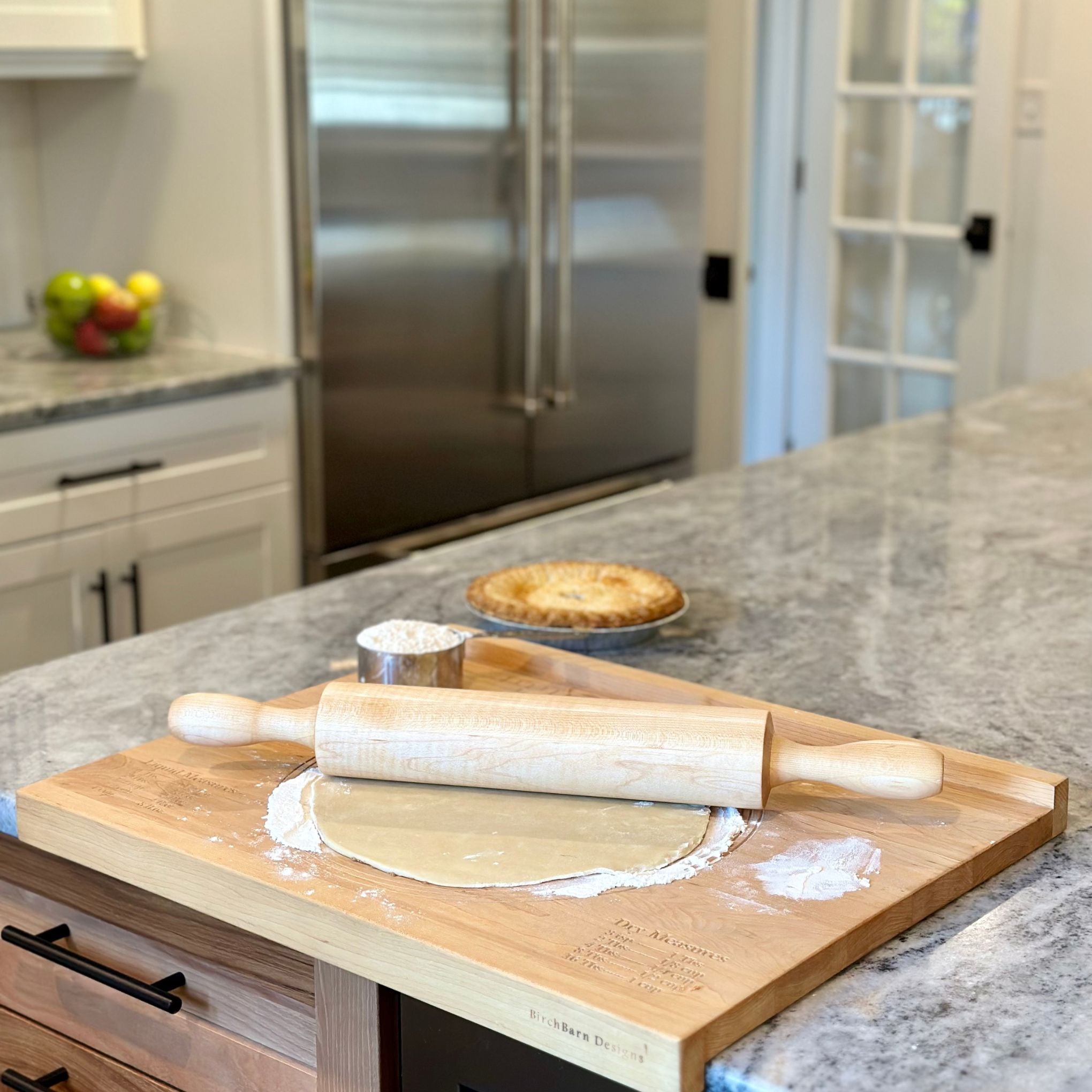 While they’re great on their own, these hand-turned wood rolling pins pair perfectly with our Pastry Board too. We engraved the pastry board with a 14″ ruler, four circles (6″-10″) for rolling the perfect crust, and handy charts for liquid and dry measurement conversions. We also recommend flipping it over and using the reverse side for slicing and serving. Dual Purpose is the name of our game!