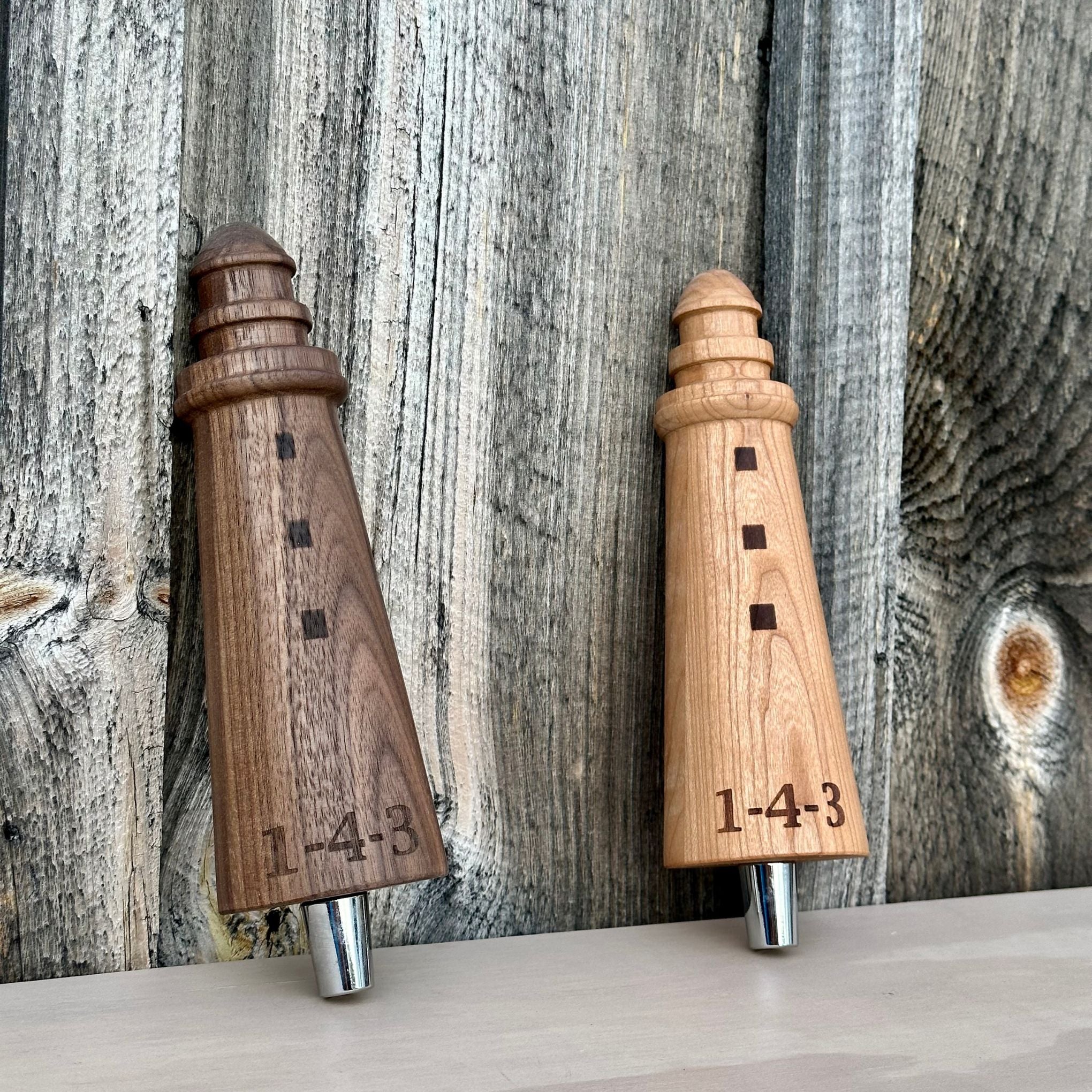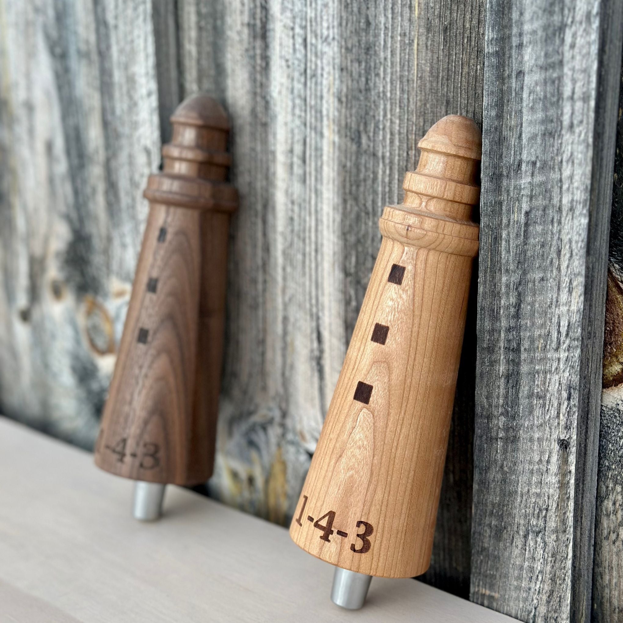 These hand-turned lighthouse tap handles would be a lovely addition to coastal home décor. Like a snowflake, no two wooden beer tap handles are exactly alike which adds to the charm. Swing by the showroom to hand-pick your favorite one, or select from the wood types above and we will pick the perfect one for you.