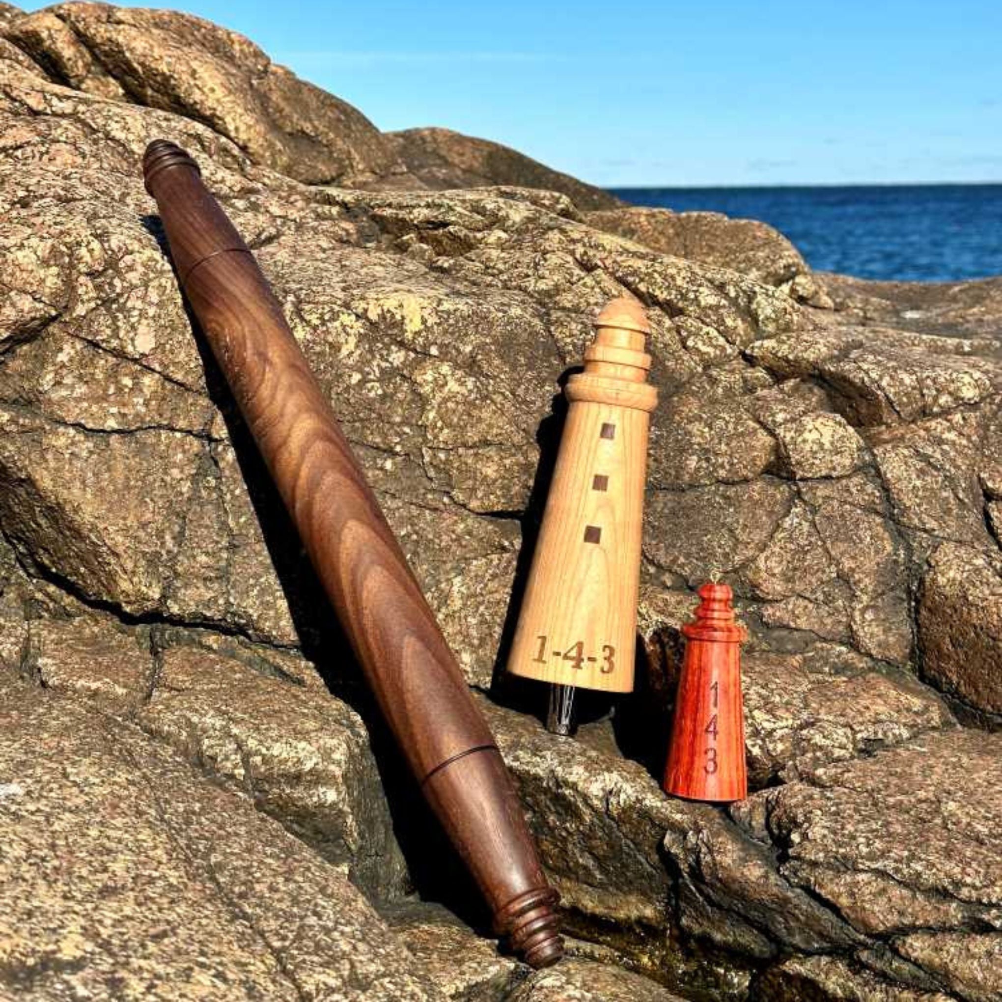 This wooden beer tap handle is a part of the limited edition Minots Light Collection. Using a lathe, our carpenters hand-turned different woods to resemble Minots Light. The decorative tap handle also features the iconic 1-4-3 to represent “I Love You”. (More on that story here.)
