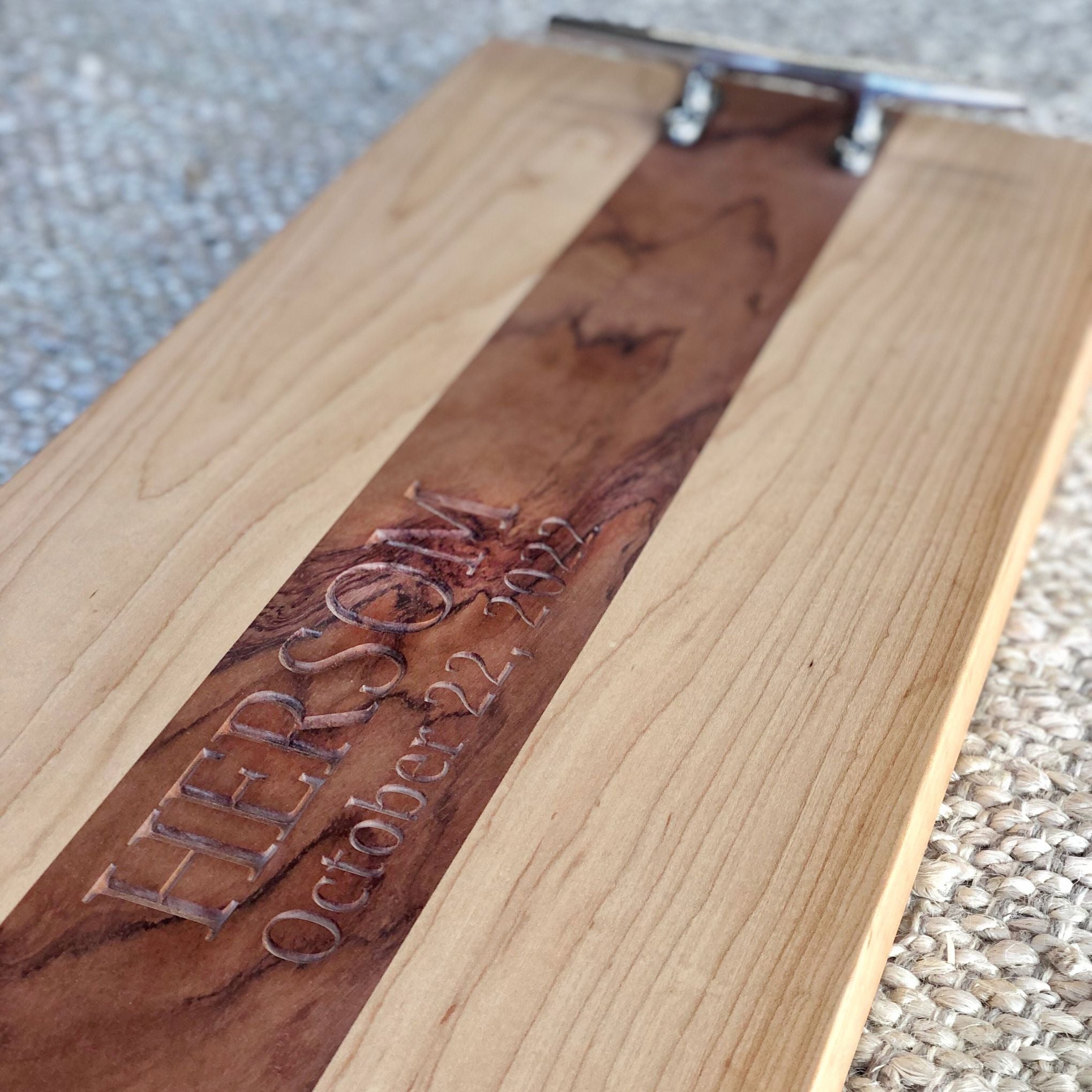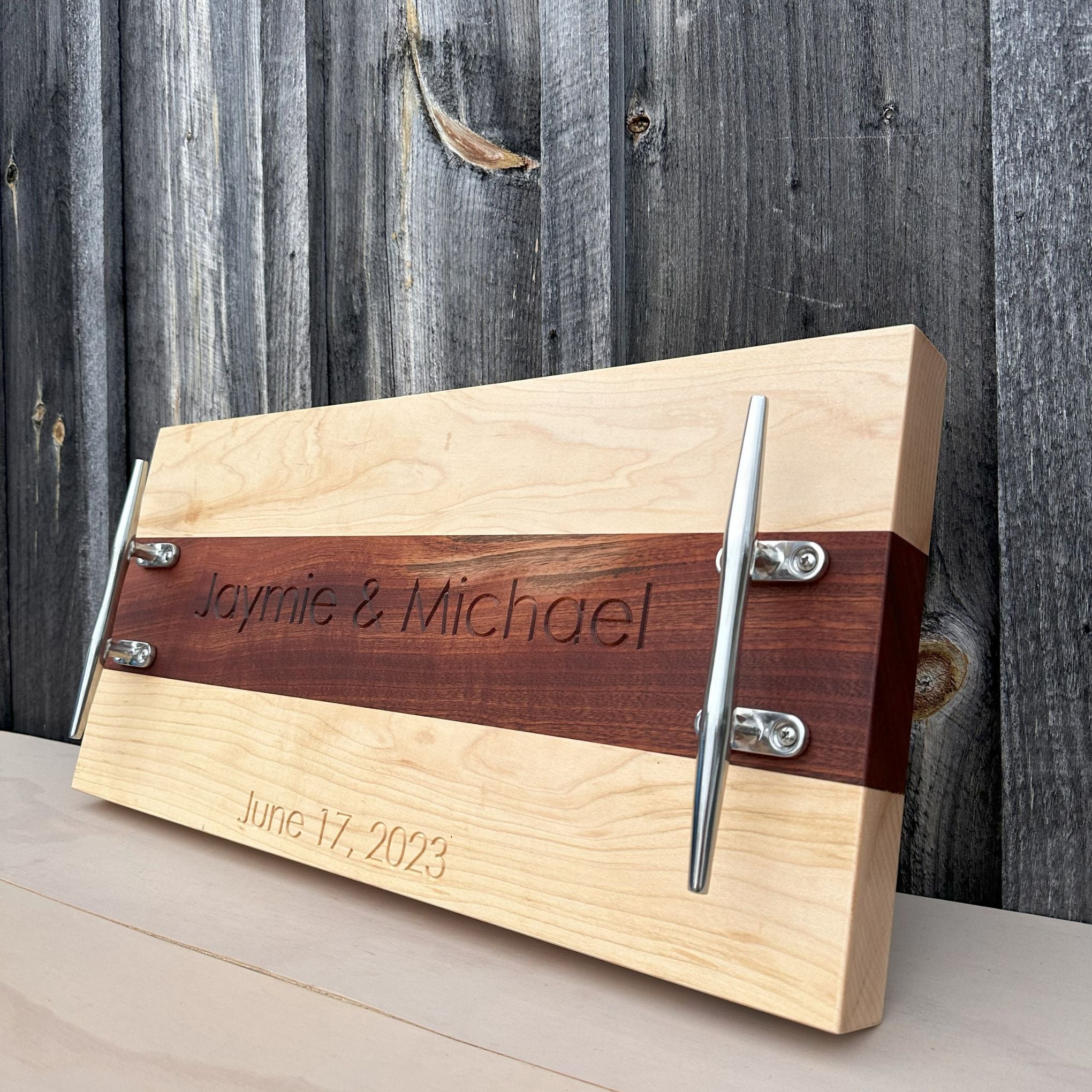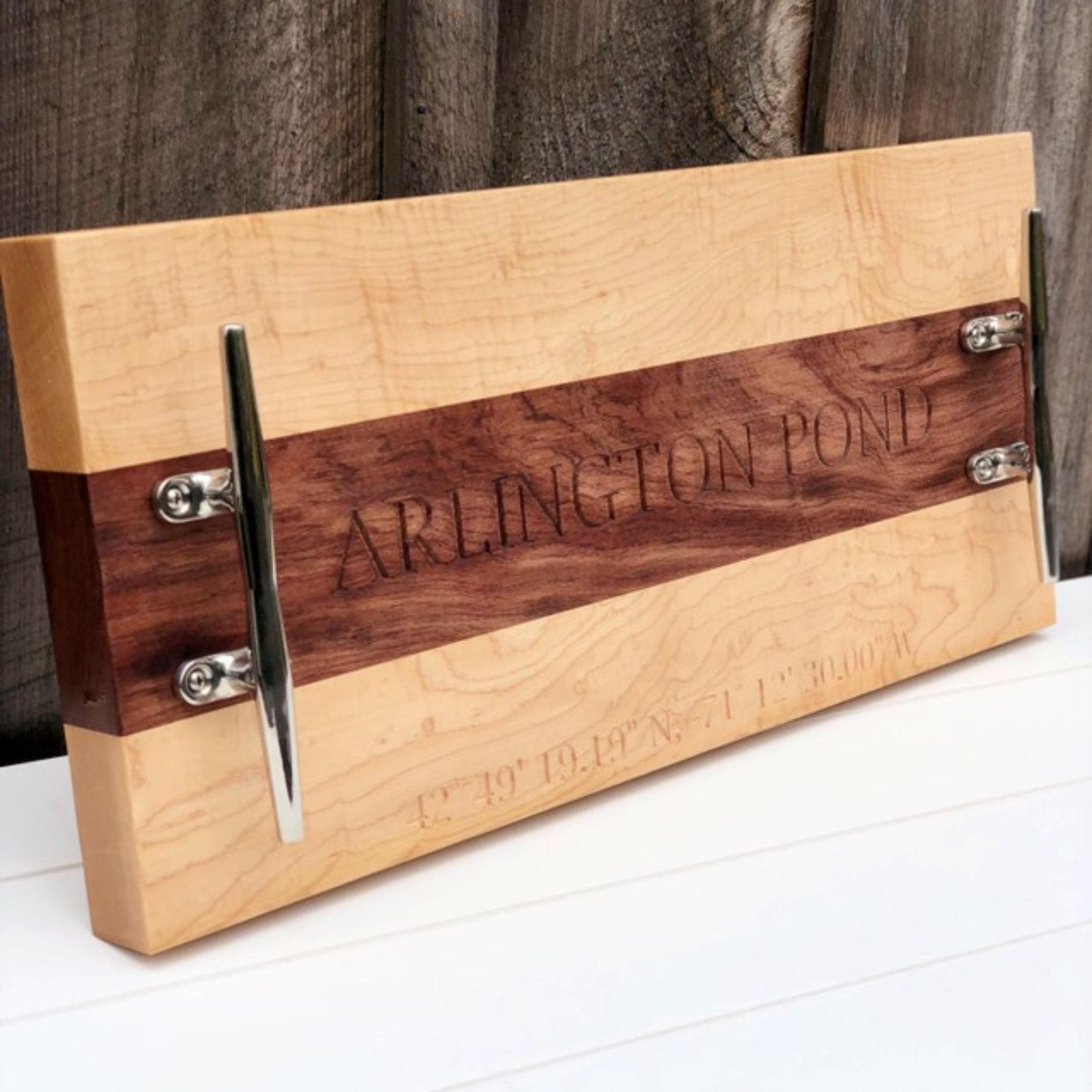 Add your personal touch with a custom engraving. Popular engravings include your last name, the coordinates of your favorite location, or even your boat’s name. Perfect for making this big wood serving board a one-of-a-kind!