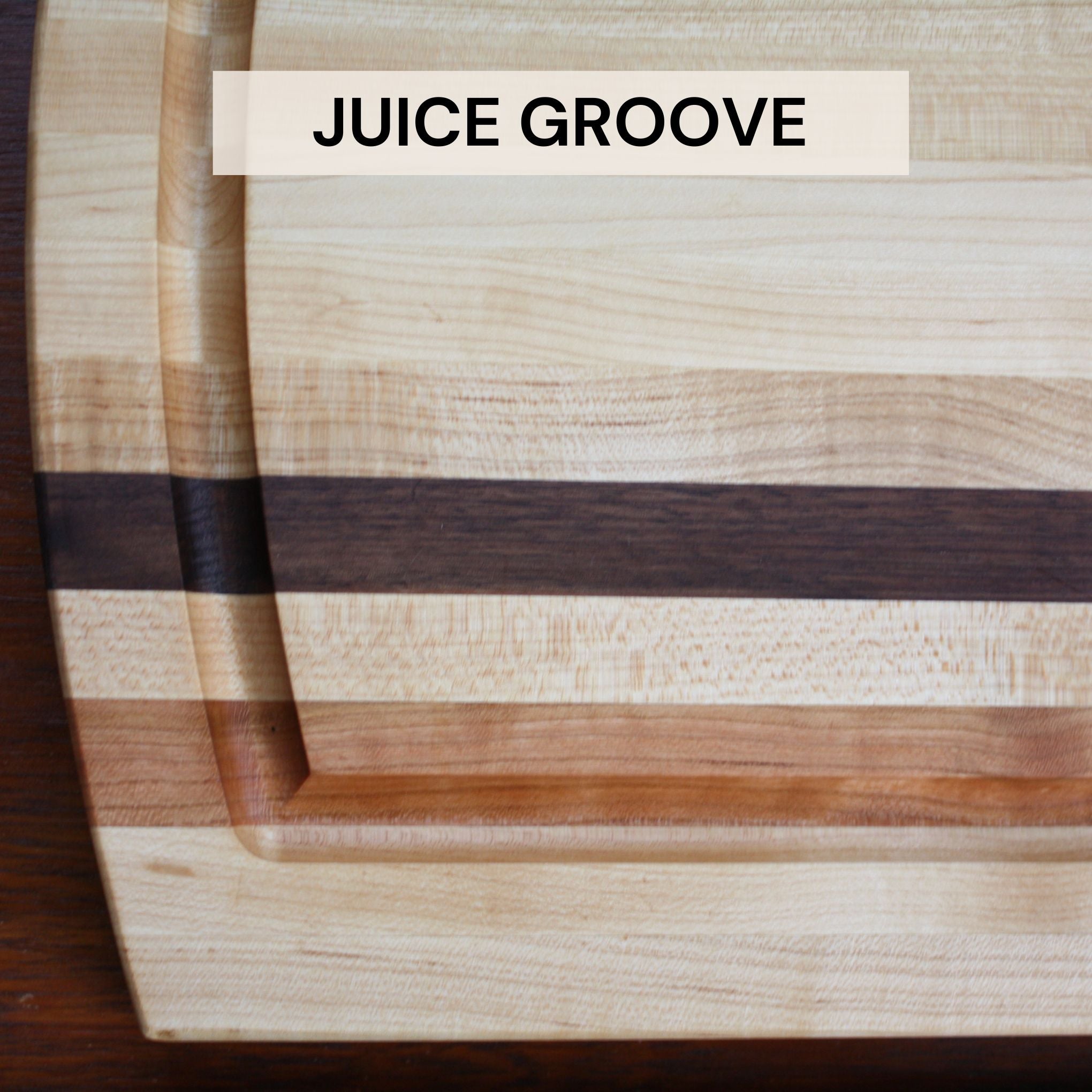 Add a juice groove to one side and it quickly becomes a two-for-one! Use it as a cutting board on the juice groove side and keep the flat side clean for charcuterie and food spreads when hosting. The Sand Hills Striped cutting boards will never let you down.