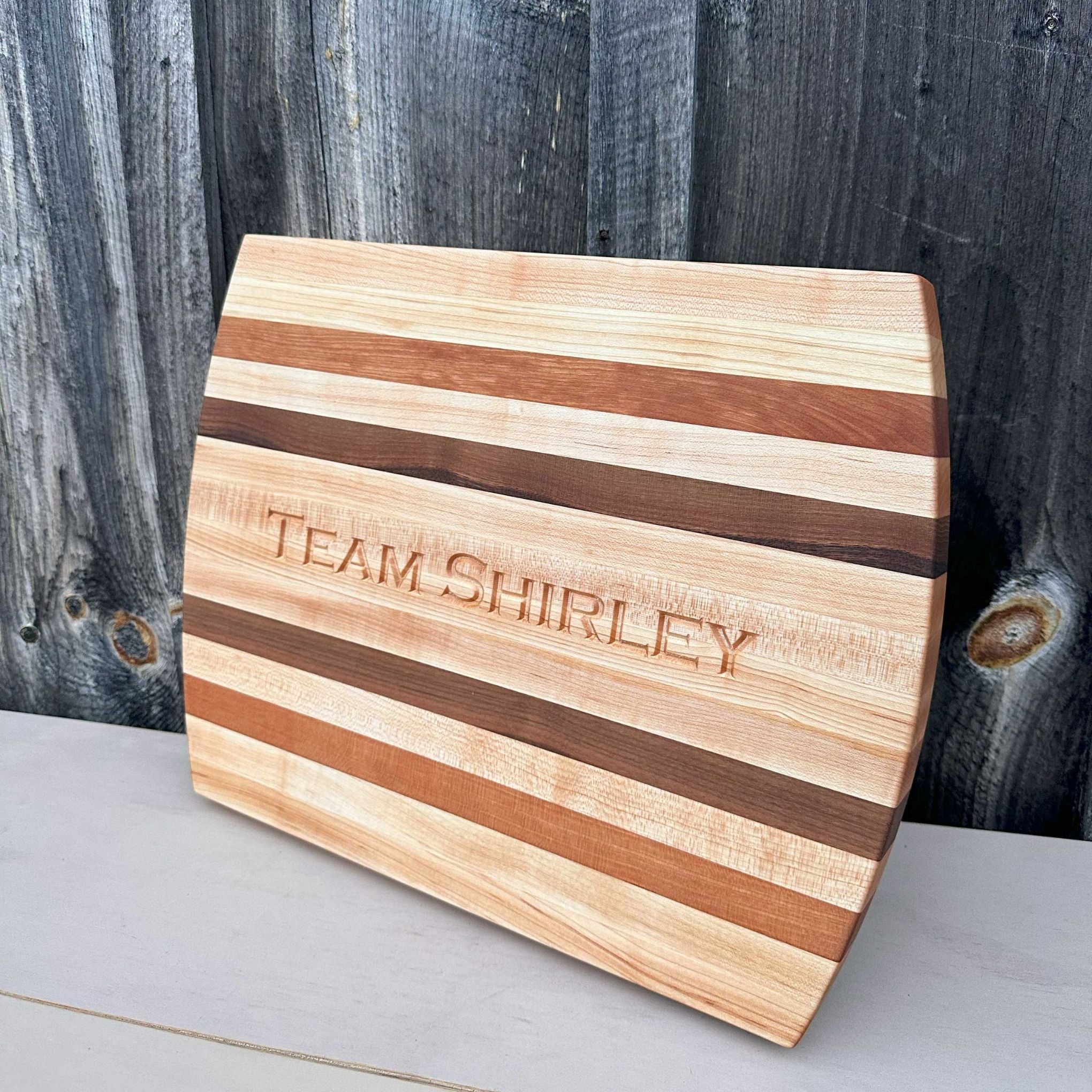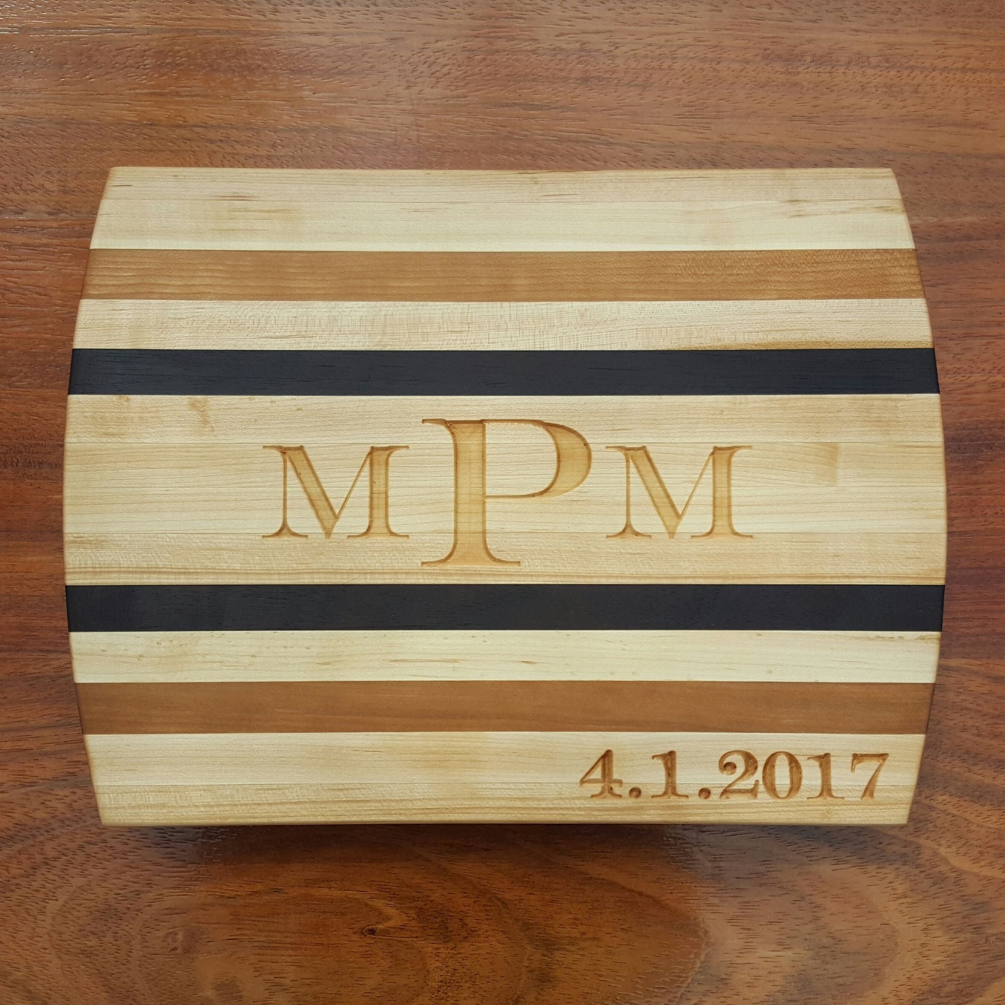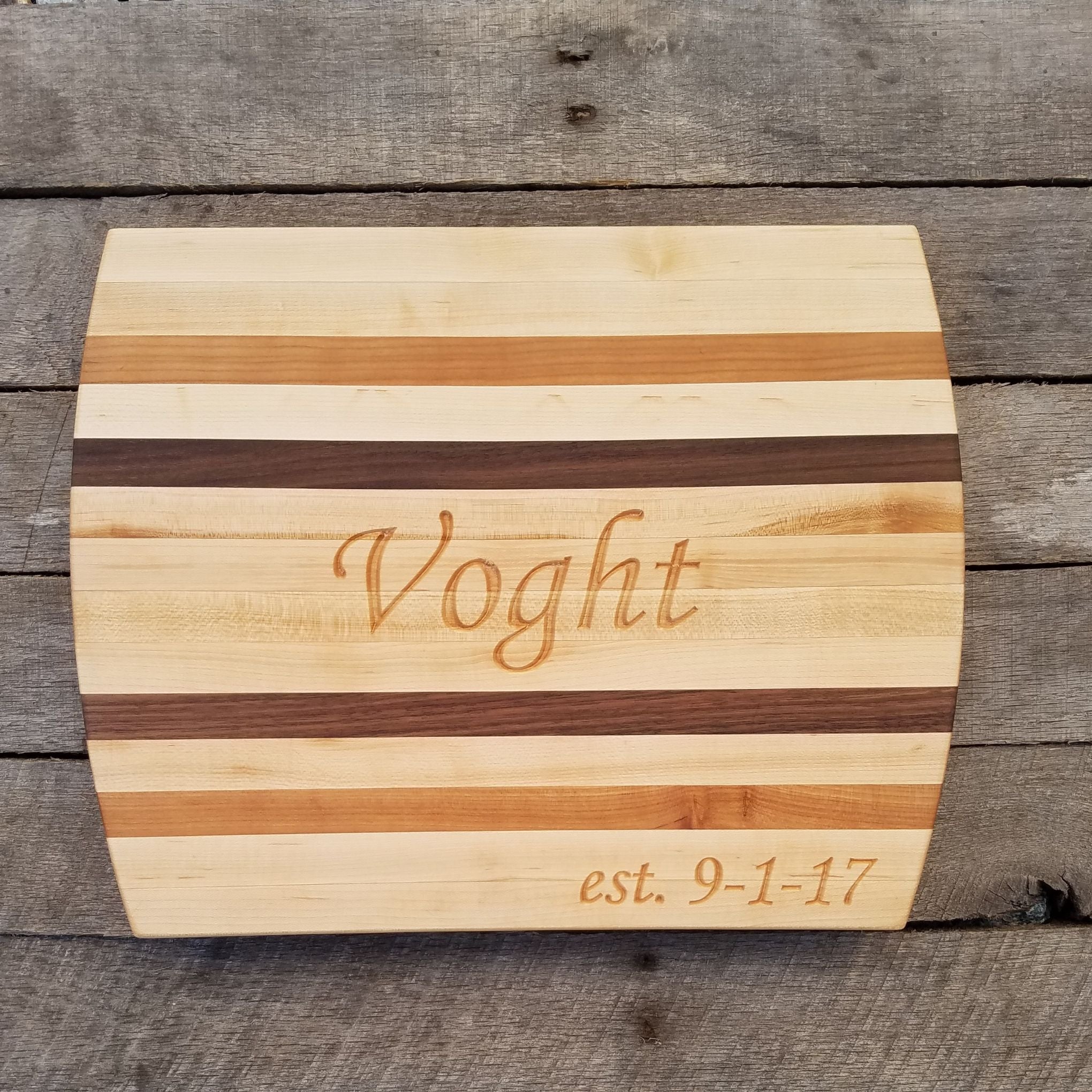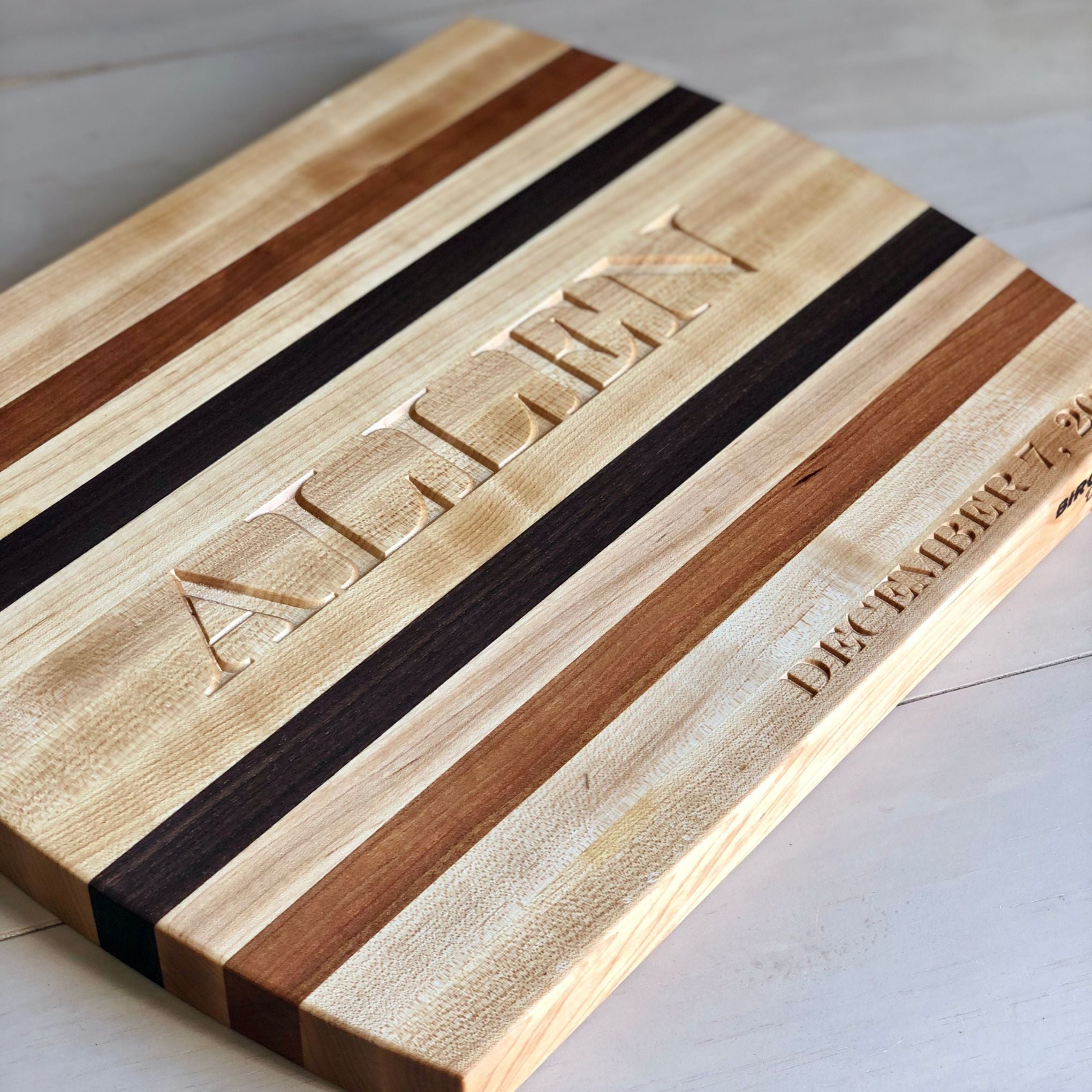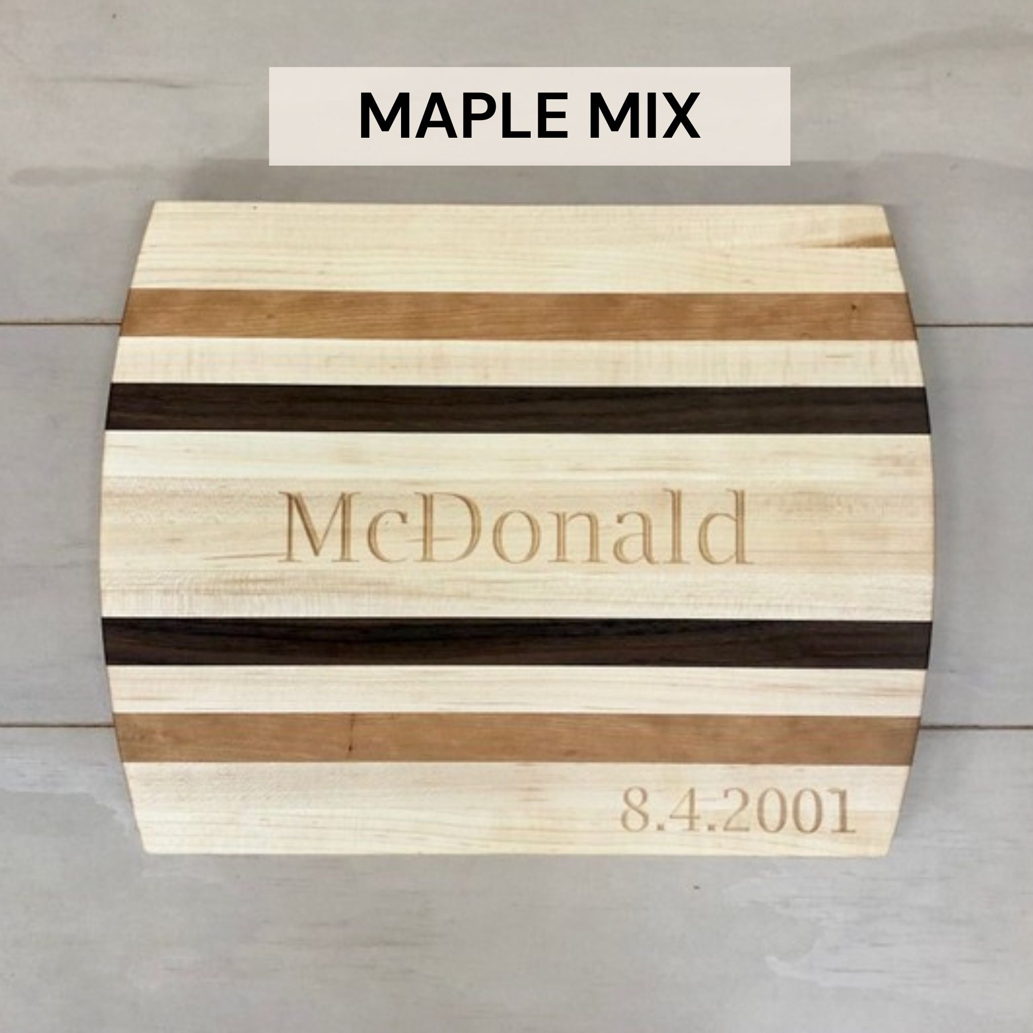 Second, but just as popular is what we've come to call our Sand Hills pattern. Made with a wider canvas of hard maple in the center of the board perfect for Monograms, laser engravings, and more!