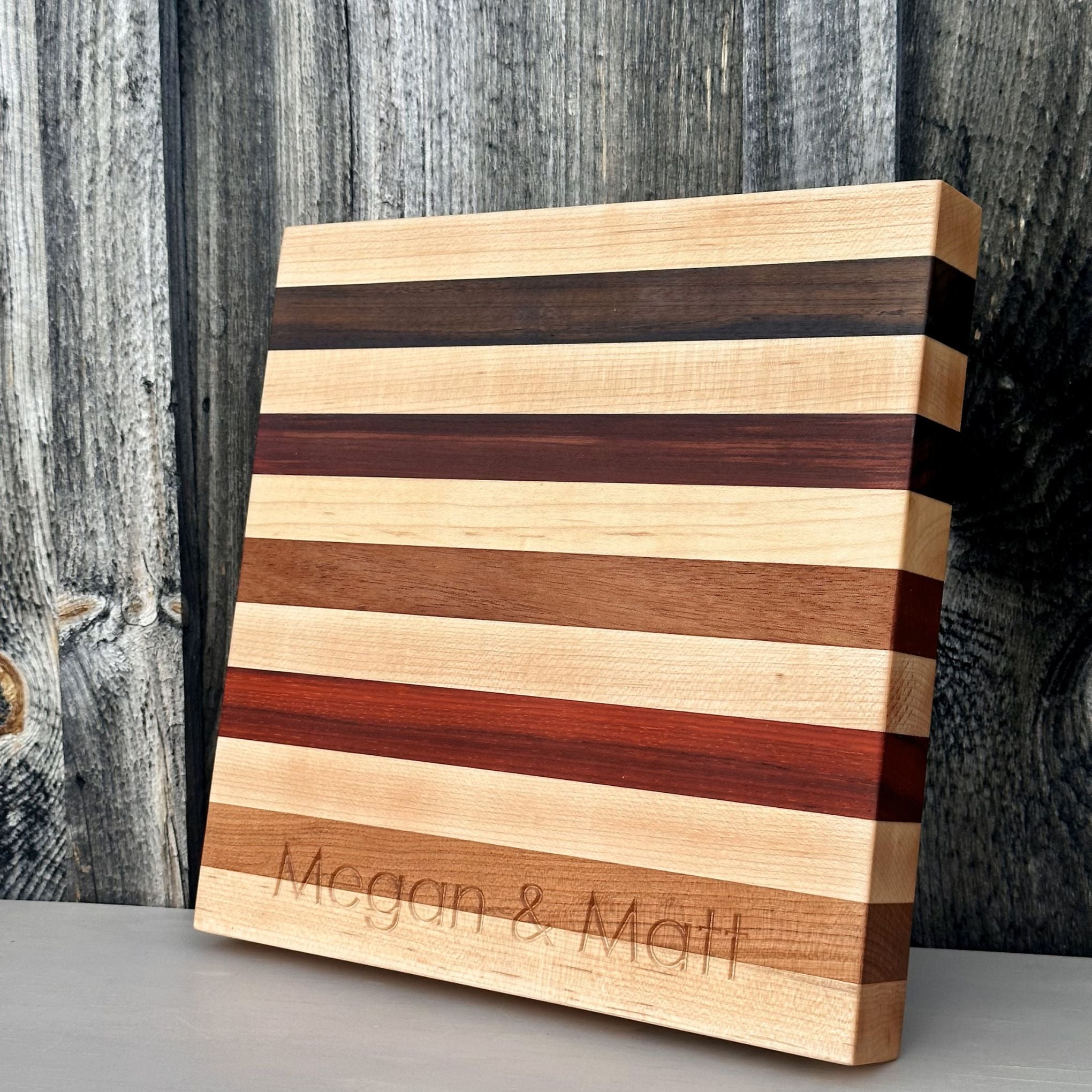 The Short Round is our everyday small wood cutting board. If you like our cutting boards’ colorful patterns but want a small version, this board is for you. Easy to use, easy to clean, easy to store, and looks good doing it all.