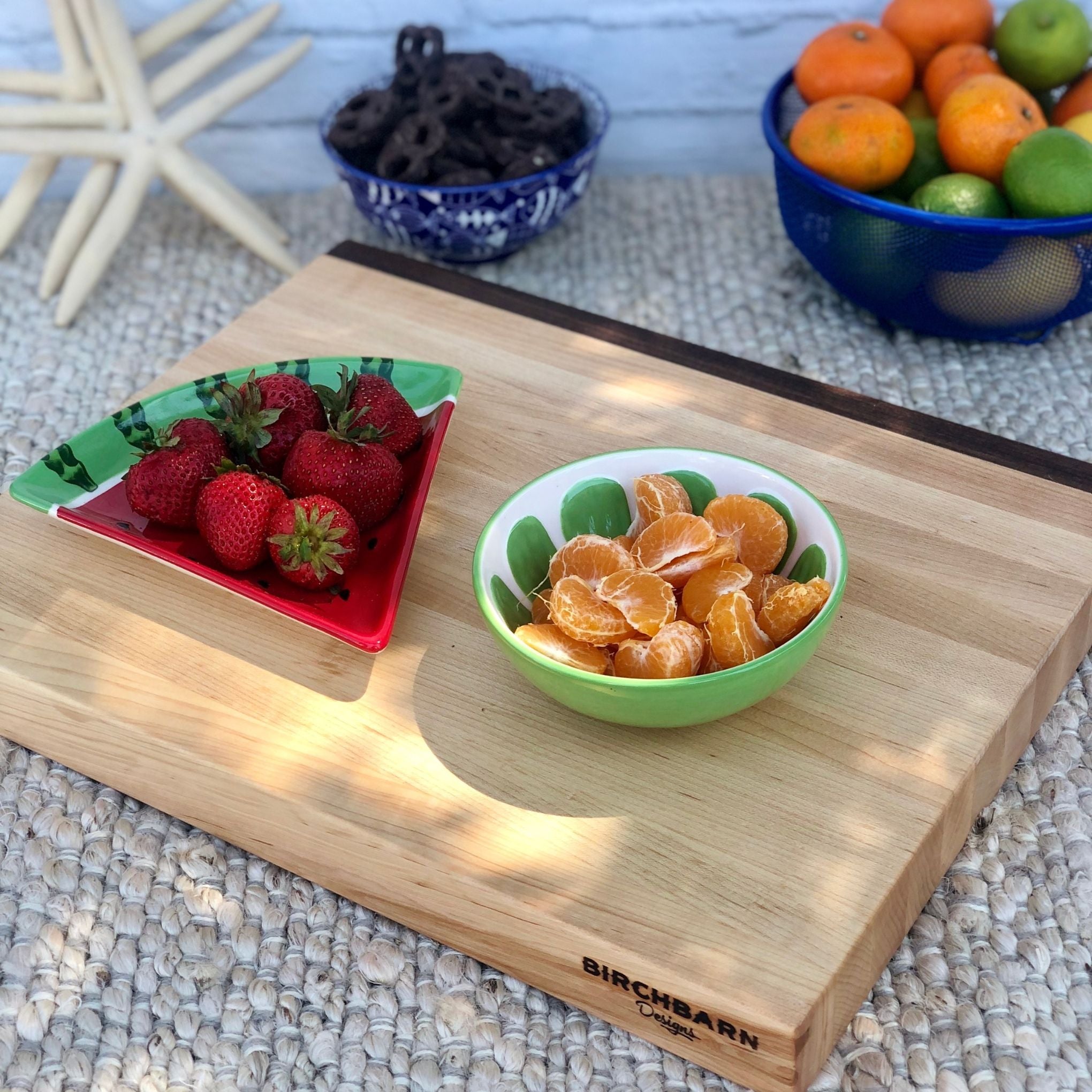 Don’t forget, there are two sides to this board. We recommend using one side for chopping, cutting, and slicing. The other side can be a fun serving board or charcuterie board for your next summer cookout.