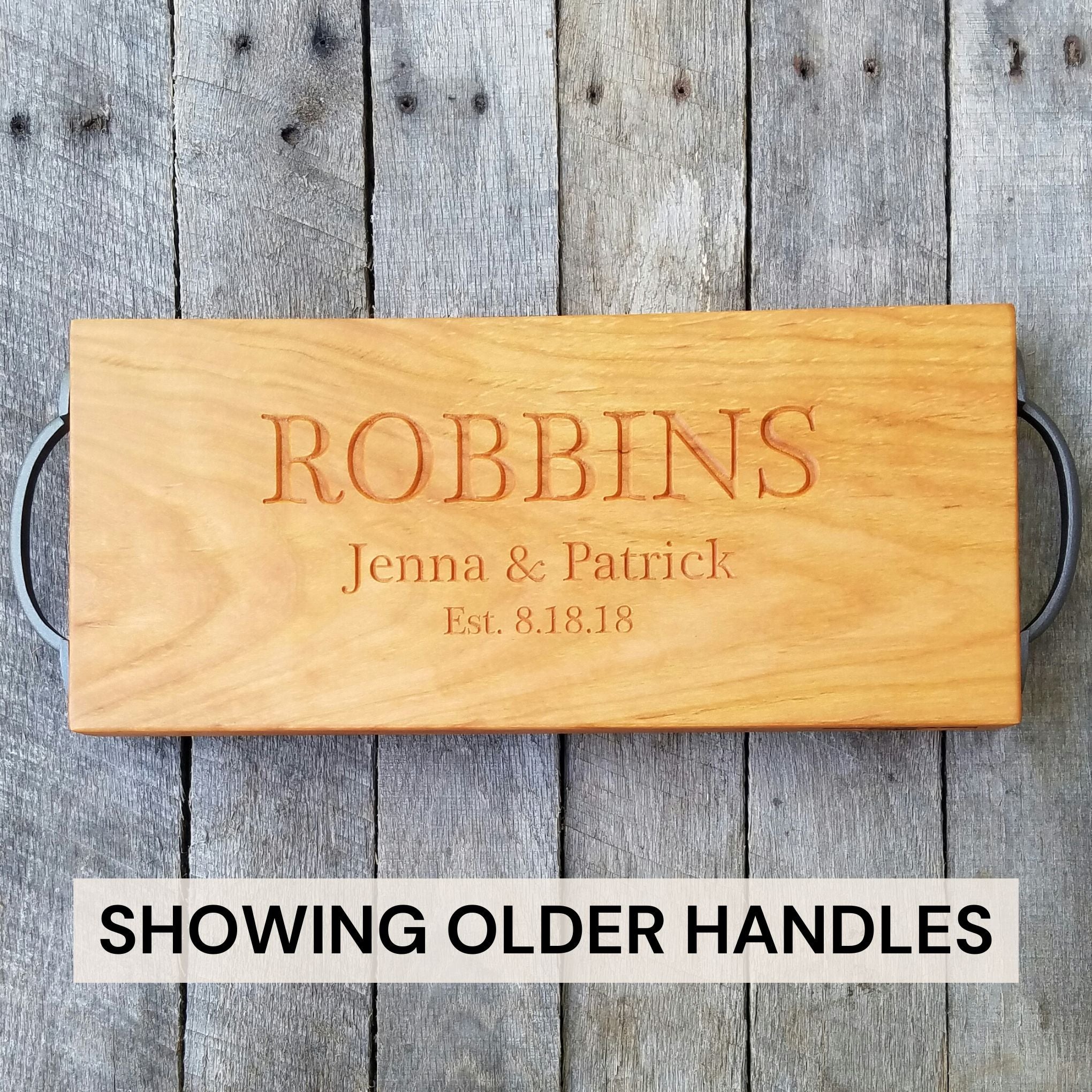 The Signature Essentials Server is the perfect canvas for engraving. A charcuterie board with handles that has plenty of room to feature a newlywed’s last name, a new homeowner’s GPS coordinates, or your favorite town and sandy beaches. The cherry server awaits your own customization.