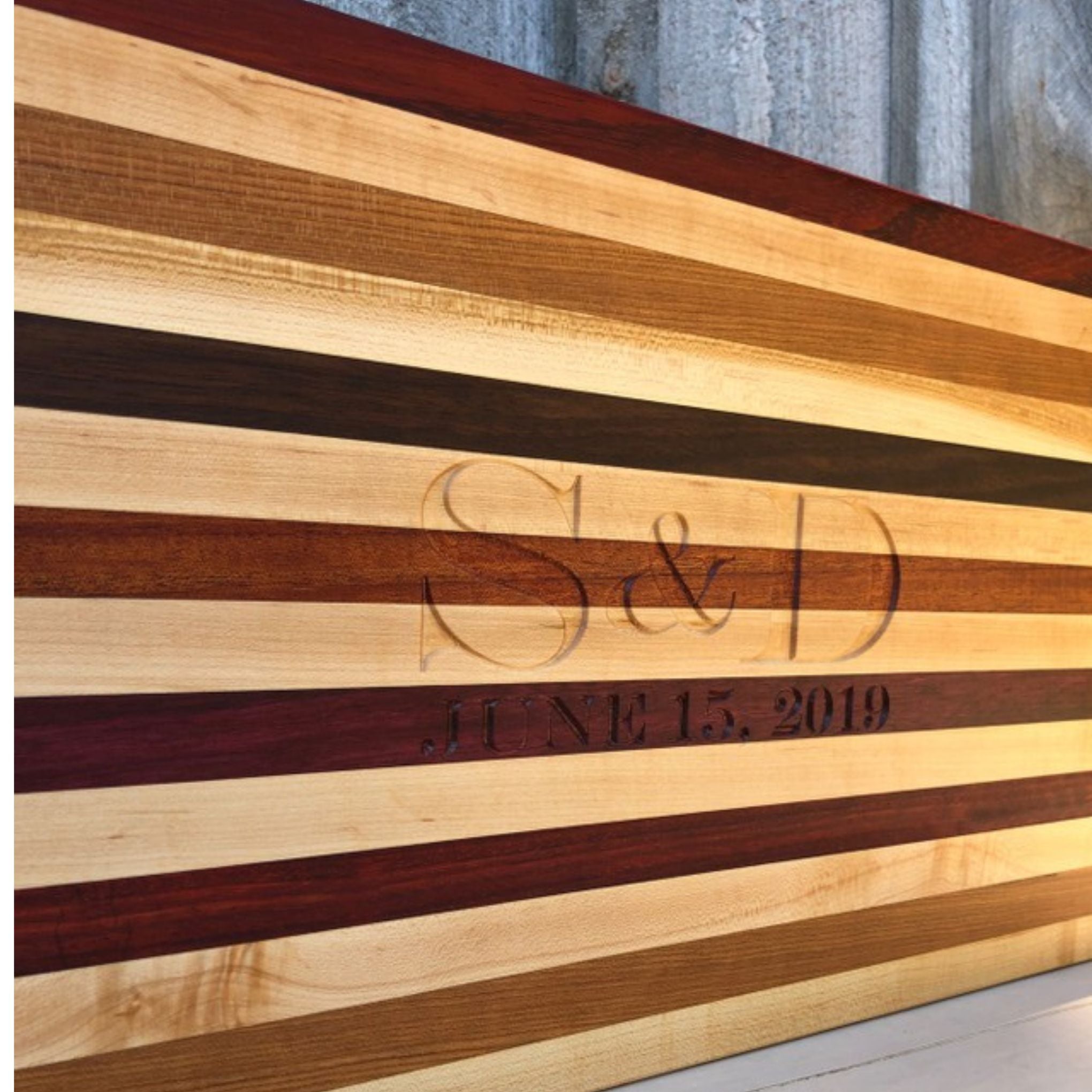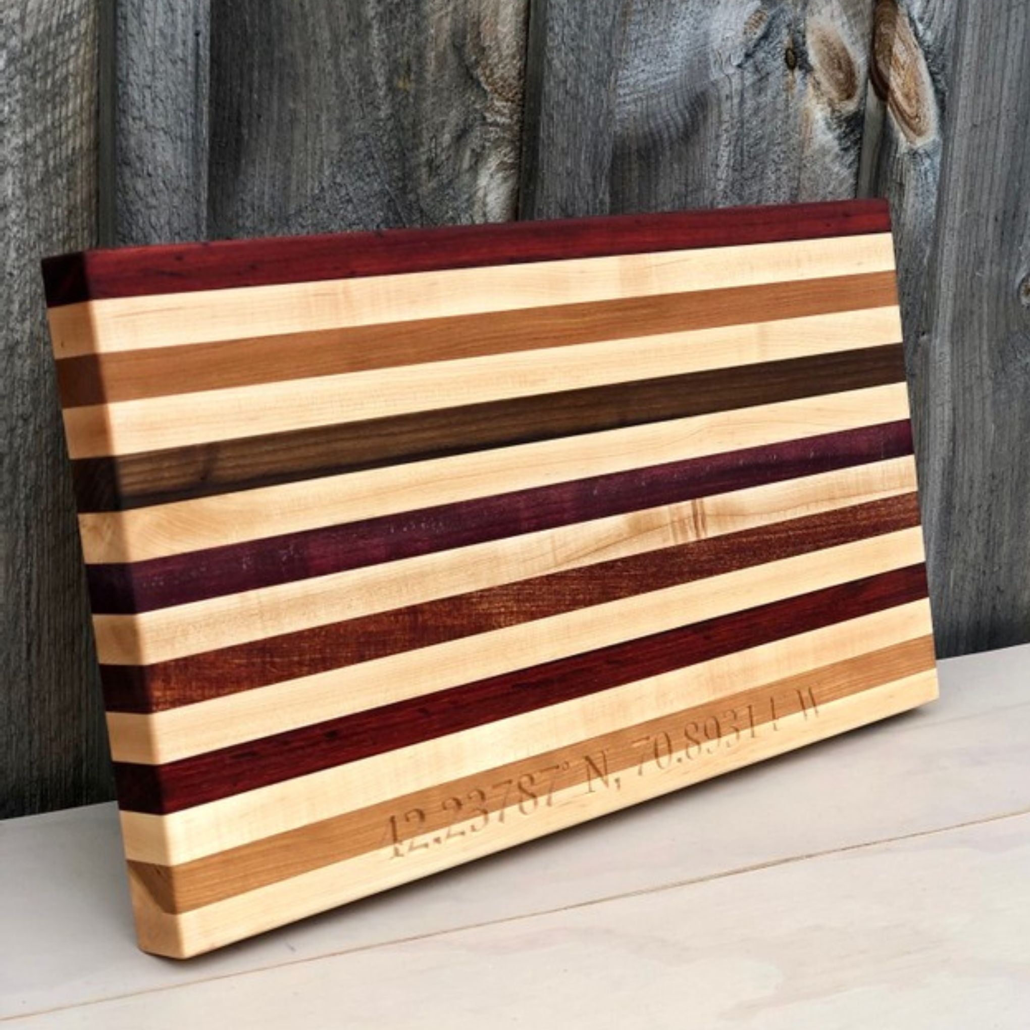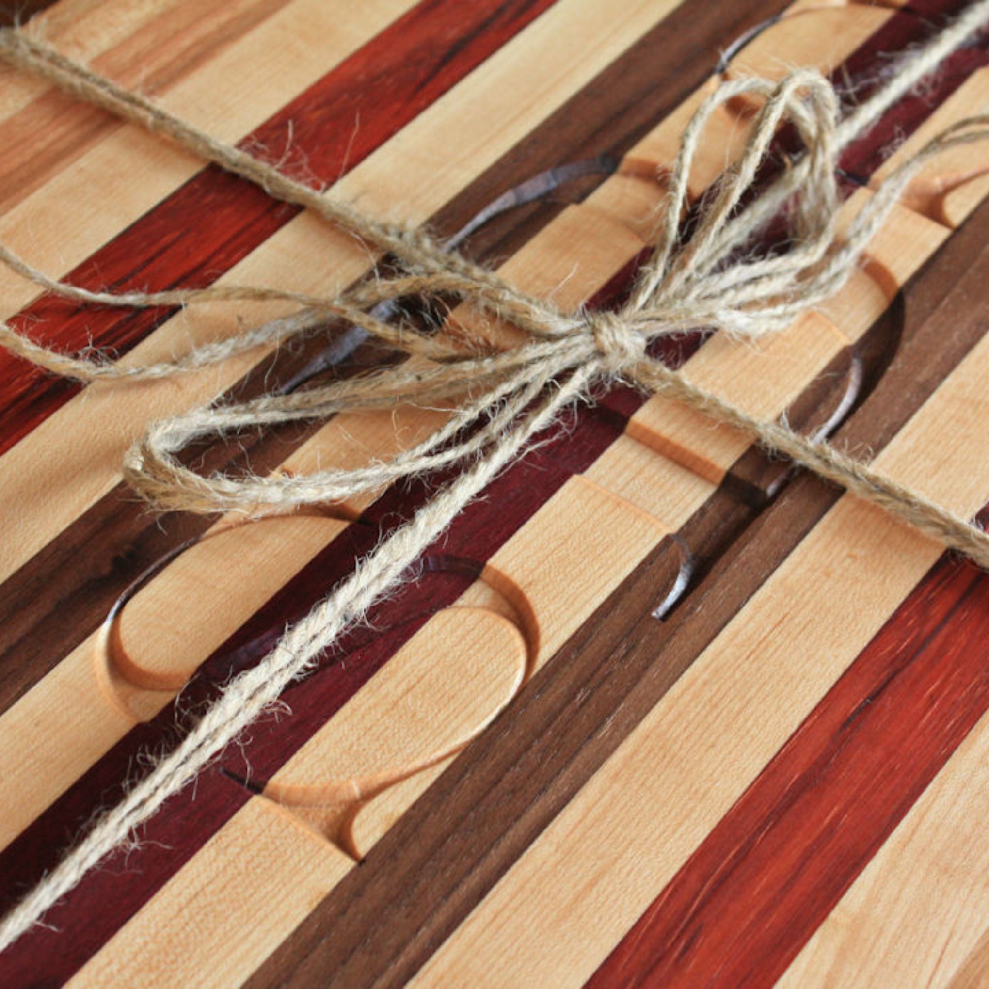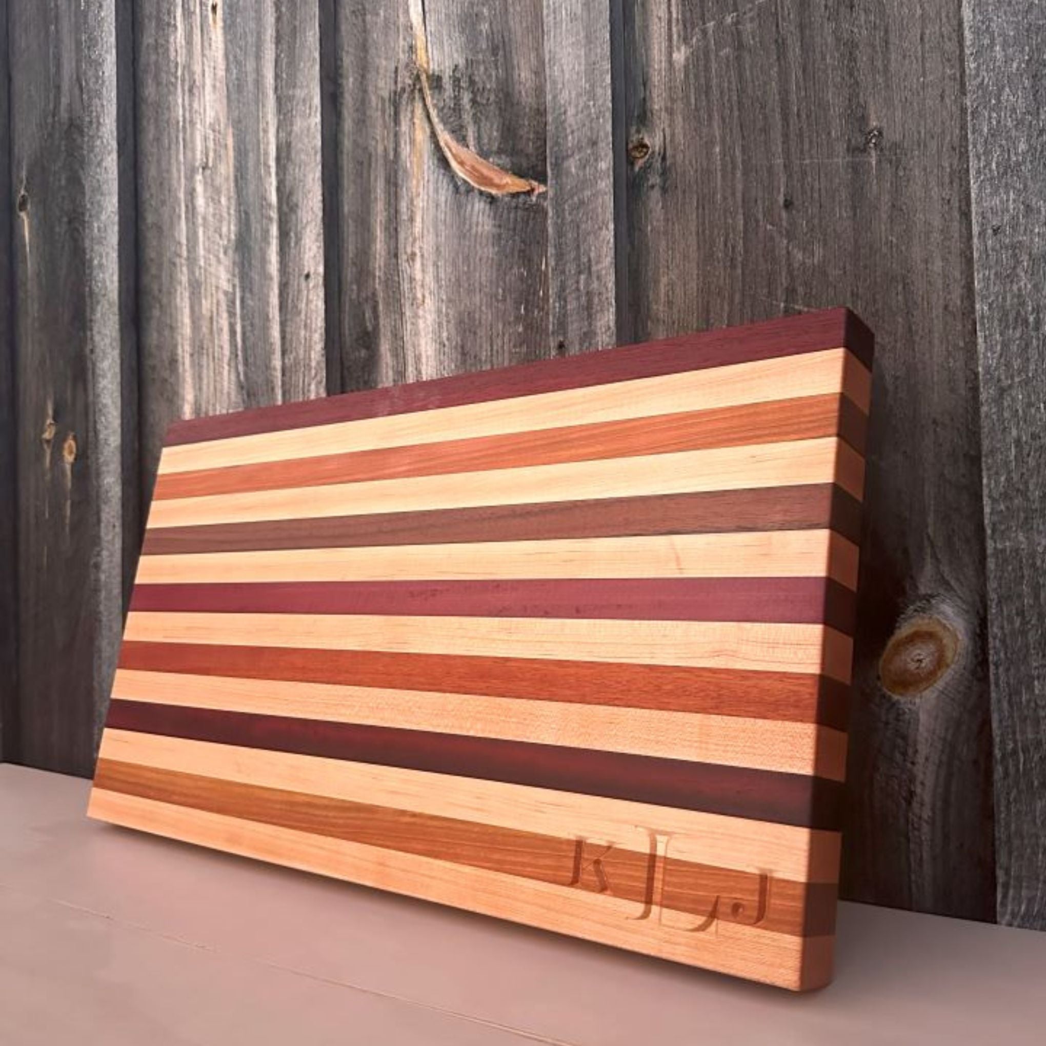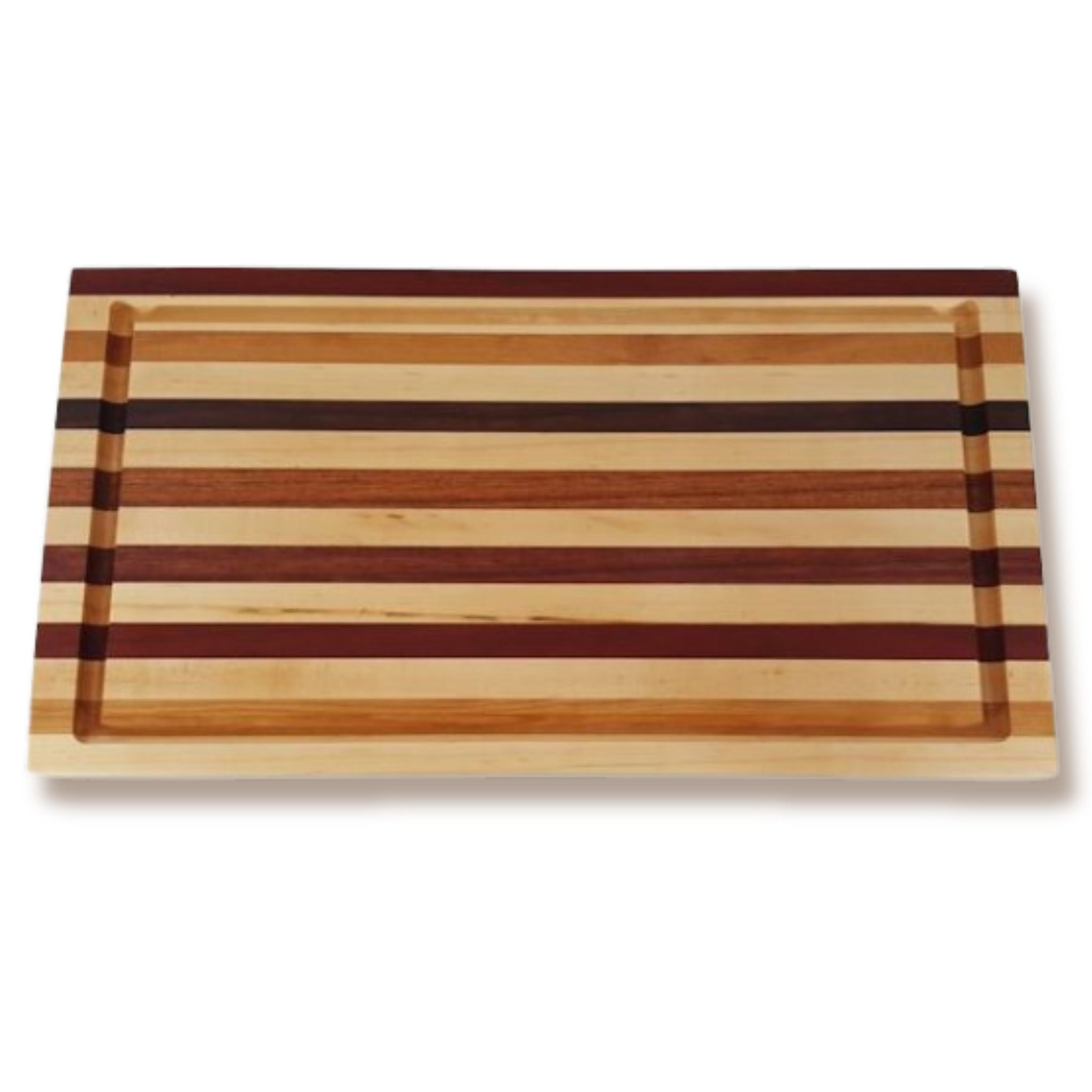 This board uses many hardwoods, including South American Purple Heart and African Padauk. These two imported hardwoods will definitely have your friends and family in awe. Some might say that keeping one side knife free for charcuterie spreads will keep that unique Original pattern cutting board looking fresh.