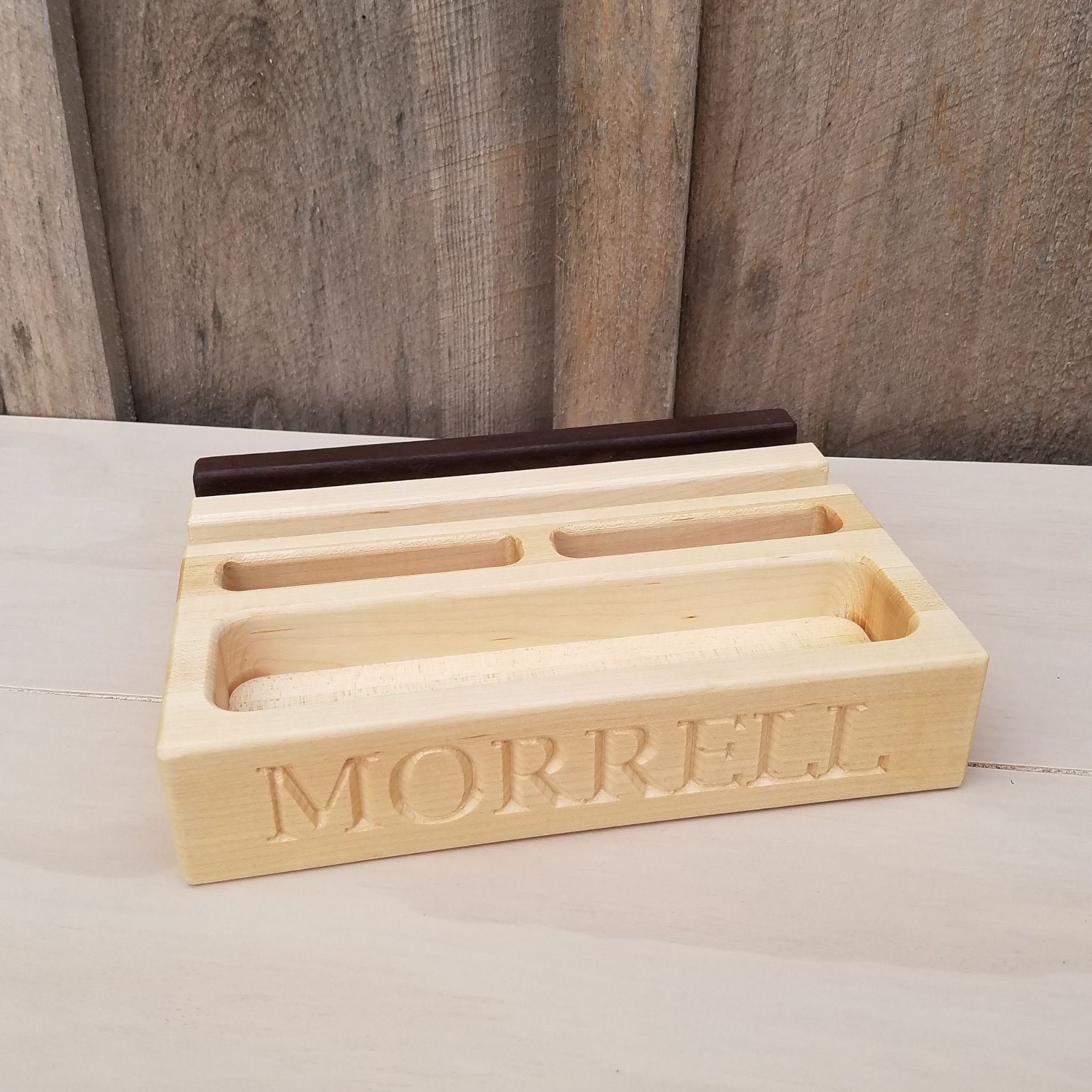 Add a personal touch by customizing the front of The Stage wooden desk organizer with an initial, last name, or logo. Available in both our Signature Essentials and Original patterns, this kitchen accessory is designed to match your cutting board of choice.