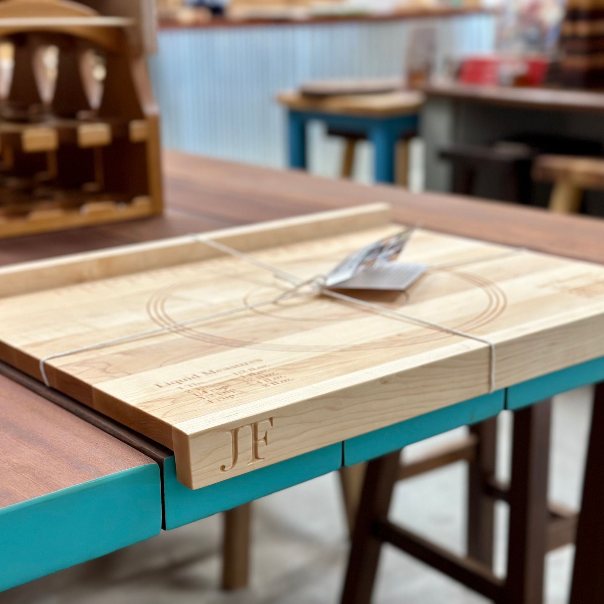 A wooden pastry board for your favorite baker! Homemade pie dough might not be in our repertoire, but we know a thing or two about wooden boards. So, when customers requested a large board to kneed and shape pastry dough, we gladly accepted the challenge.